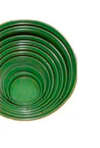 Vasos cachepot coloridos em formato circular, apresentados em verde, laranja e preto, com detalhes na borda e suas variações de cores. Vasos cachepot coloridos em formato circular, apresentados em verde, laranja e preto, com detalhes na borda e suas variações de cores.